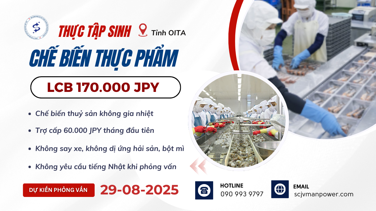 HomeĐƠN TUYỂNTHỰC TẬP SINH CHẾ BIẾN THỰC PHẨM TẠI OITA