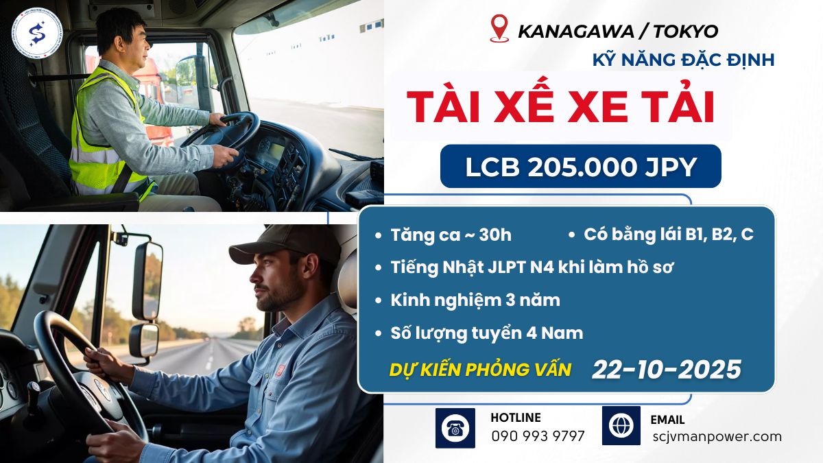 Yêu cầu khác: có bằng lái xe B1, B2 (trên 1 năm), ưu tiên có bằng C