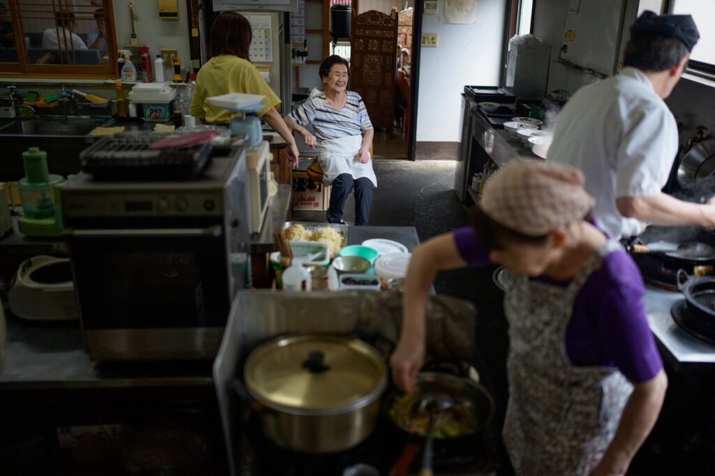“Thật tuyệt vời khi tôi vẫn còn có thể làm việc. Về cả thể chất lẫn tinh thần, điều đó khiến chất lượng cuộc sống của tôi thay đổi hẳn” bà chia sẻ, khi đang ngồi bên dưới bức ảnh có chữ ký của Takuya Kimura – nam ca sĩ kiêm diễn viên nổi tiếng từng ghé thăm quán vào năm ngoái. Làn da của bà căng bóng, điều mà bà cho là nhờ hơi nước bốc lên suốt ngày trong bếp.