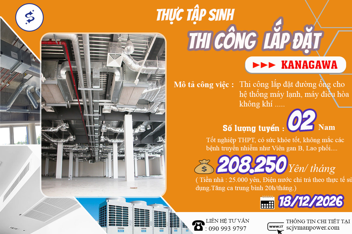 Nội dung công việc: Thi công lắp đặt đường ống cho hệ thống máy điều hòa không khí, máy lạnh…